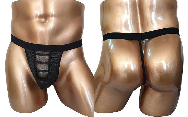 セクシーなブラックメッシュの窓が前面に。網戸に張り付いた爬虫類のように、謎の異物感を演出できます。深淵を覗く者は、深淵もまた貴方を見ているのです。お尻は上級者対応のヒモだけGストリングTバック!