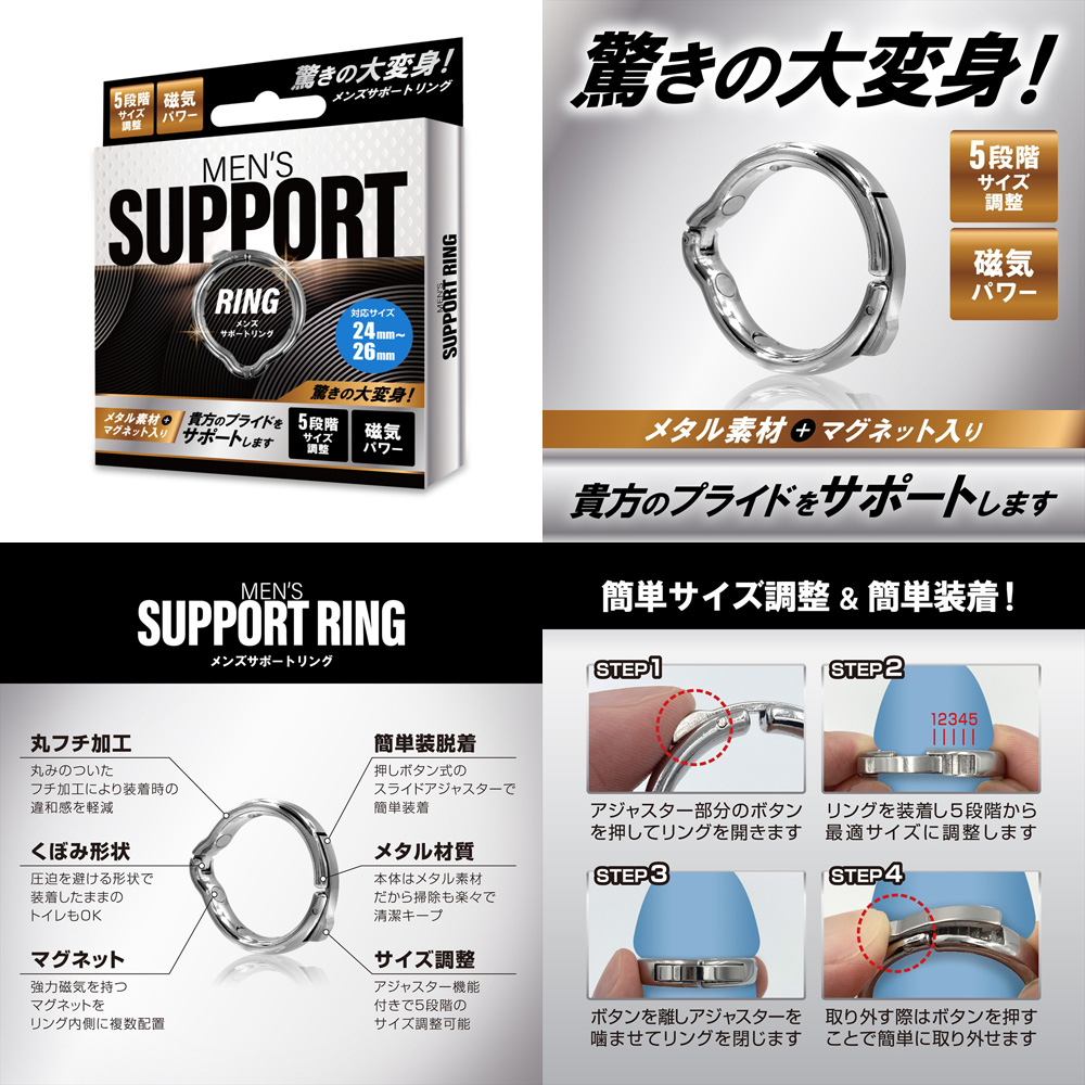 装着したままでトイレも行えるくぼみ形状、スライドアジャスターで簡単装着。