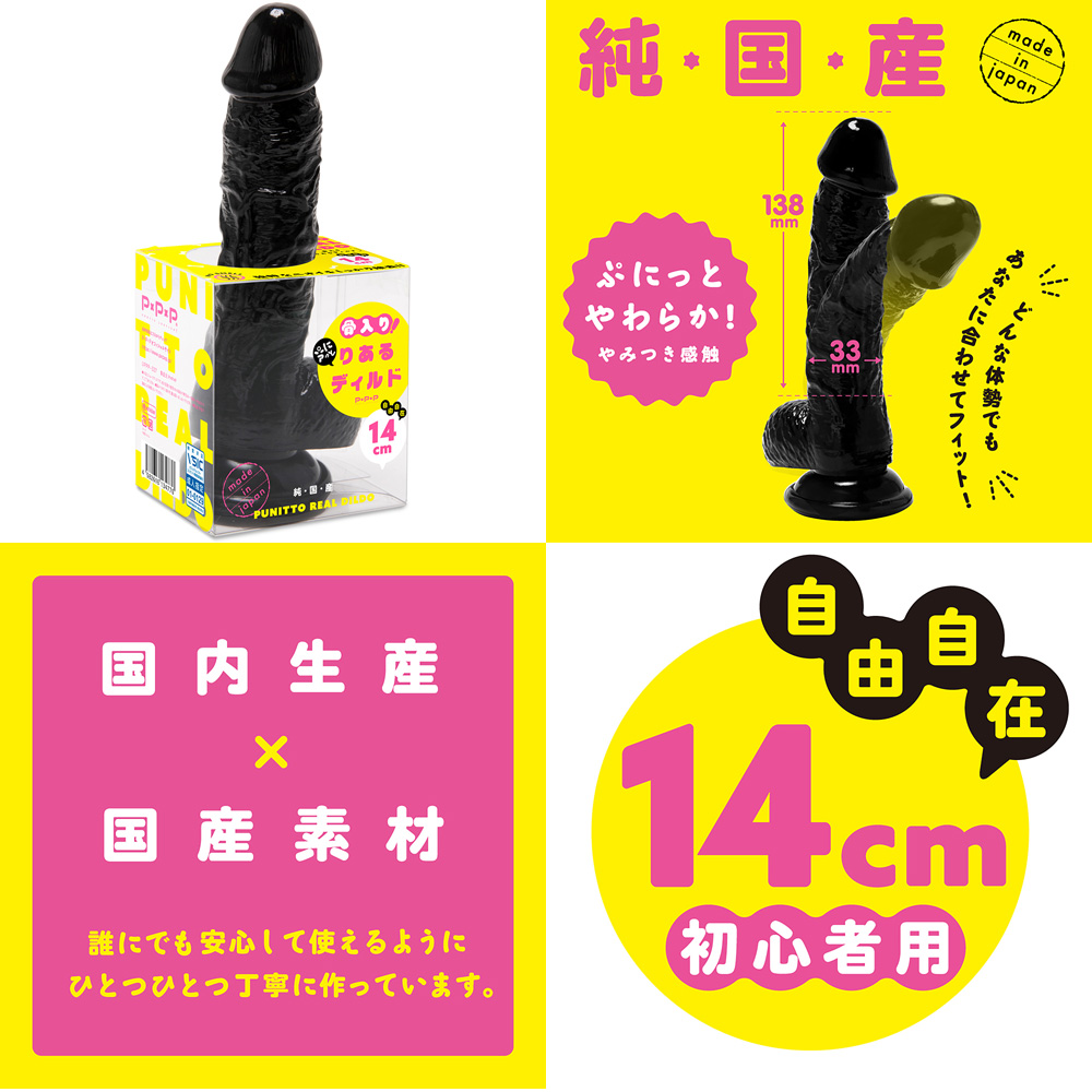 PUNITTO REAL DILDO 12cm ( bendable / black ) boasts made-in-Japan with a modest length and girth that beginners will find easy to enjoy. The shaft features realistic veins and textures, while the cute glans is as much a delight to squeeze and stroke as it is to insert. The dildo is fully bendable so you can manipulate it into the angle of curve that works best for you.