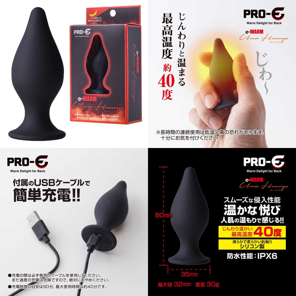 使用前後には水洗いも可能なので、清潔で安心したプレイをお楽しみください。人肌に温まる機能と、初心者でも安心のサイズ感のPRO-Ee-WARMシリーズ。心地よいバックドアプレイをご堪能ください。