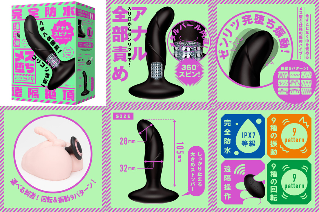 COME LIKE A GIRL BACK VIBE 9 ( Anal Spinner ) is here to spin you right round, baby. Featuring a superbly curved, penis-shaped dildo with varying girth, the Anal Spinner offers nine patterns of vibration and a further nine kinds of rotation.