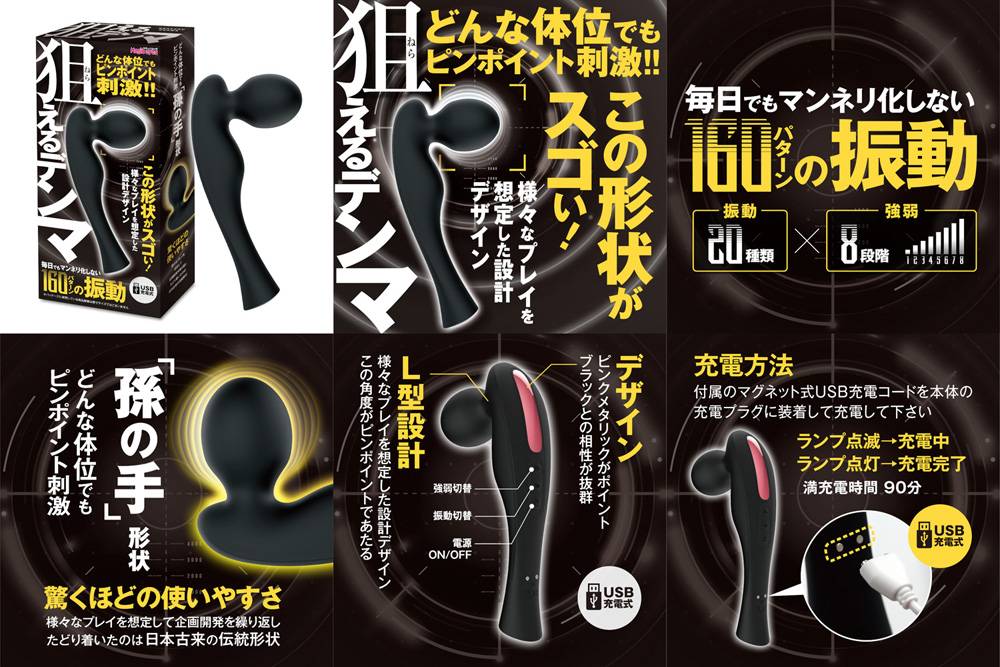 圧倒的な160パターンのアクション数を誇り、L字の孫の手形状がどんな体位からでもピンポイントに刺激。