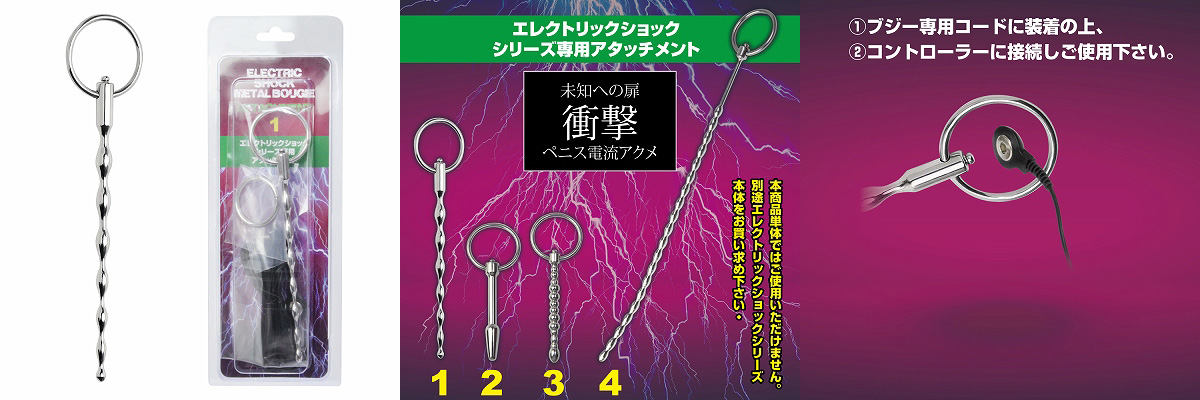 別売りのエレクトリック ショック (コックループ&ブジー )に接続して好みのサイズで楽しめる専用ブジーアタッチメント。