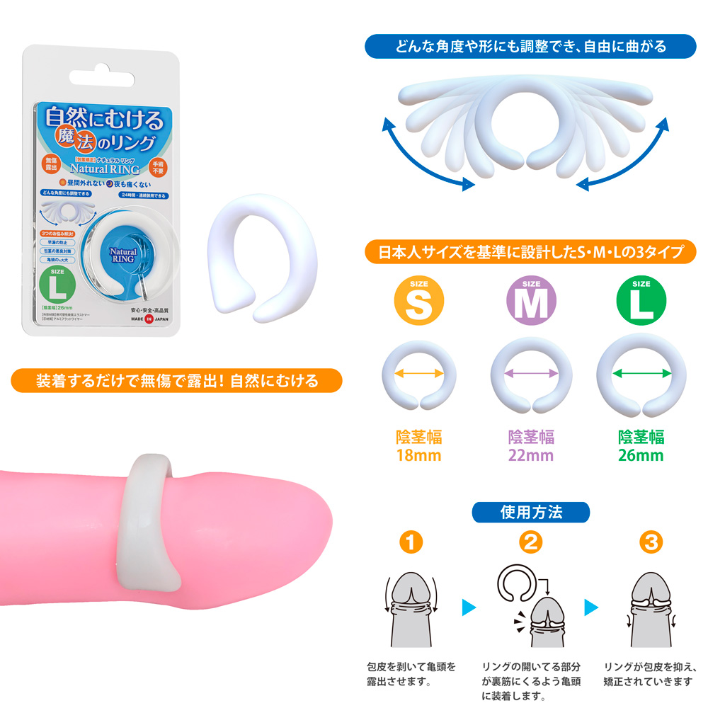 ペニスはサイズも形も人それぞれですが、「ナチュラルリング」なら、どんな角度や形にも調整OK。