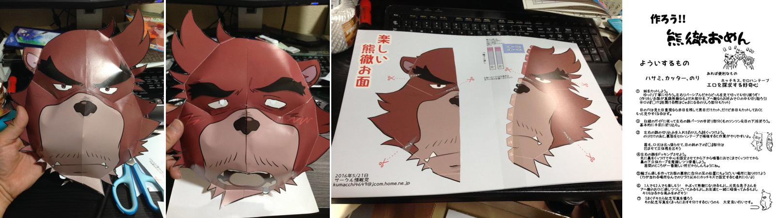 バケモノの子の熊徹の立体お面のペーパークラフトです