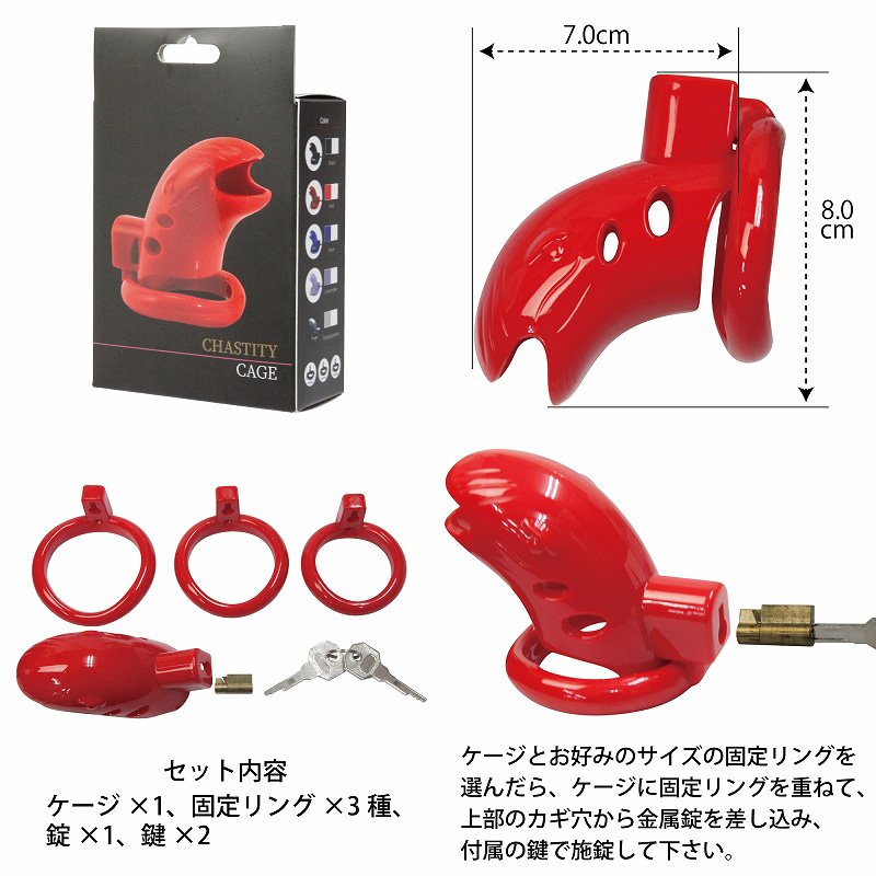 ENGLISH TITLE CHASTITY COCK CAGE ( red )