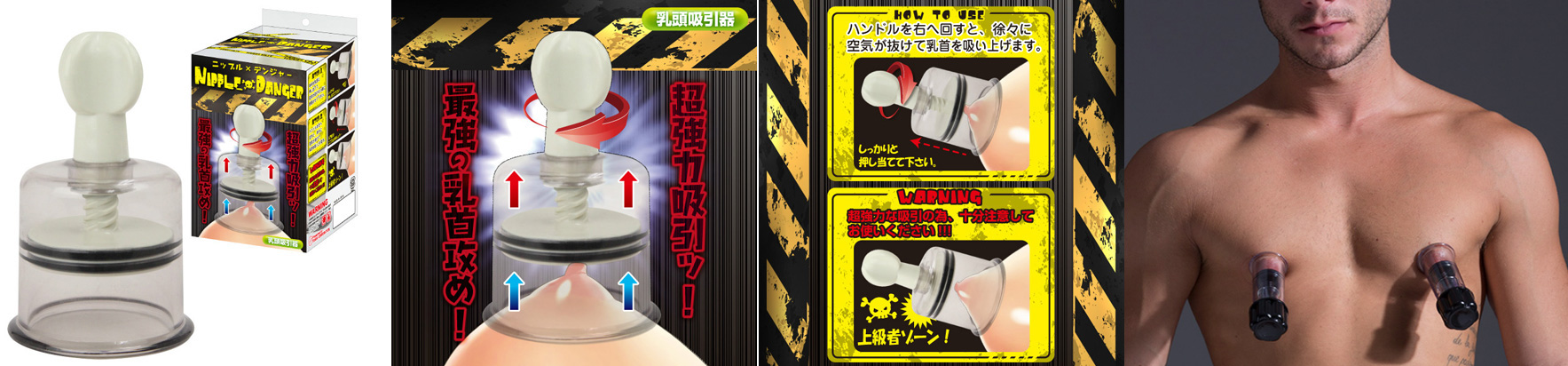 押し当ててハンドルを回すだけ。乳首を吸い上げ性感開発!